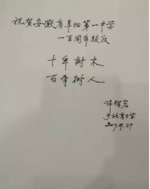 在我心目中,坐落在古城颍州人才荟萃的阜阳一中,不仅仅是自己的母校,她首先是父亲的母校。父亲1957年从这里毕业后,做了半个多世纪的乡村教师,黑板上练得一手运笔如飞的“二指禅” 功夫。皖西北穷乡僻壤不少目不识丁庄户人家的孩子,受到父亲的知识文化启蒙成为社会的有用之才。饮水思源,其火种就源自于一中博学的老先生们。