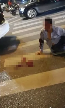 事故现场,轿车挡风玻璃碎裂,保险杠、大灯等部件受损严重,电瓶三轮车“横躺”路中间,伤者已被120接走。