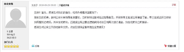 颍州公安分局领导高度重视,立即安排法制科给出指导意见,并安排阜王路派出所调查了解,阜王路派出所立即安排民警到达现场,并未发现野狗,近期派出所出警巡逻期间将对该区域再次进行清查,如发现野狗立即捕杀。