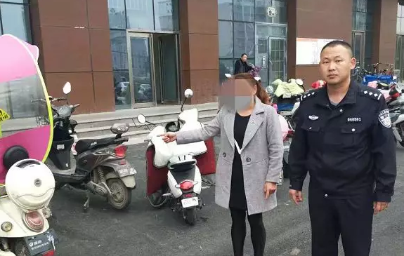 她途经报警人电动车时,发现车灯闪烁、可能没上锁。随后,女子将自己的电动车停在附近,把报警人的电瓶车推离现场。