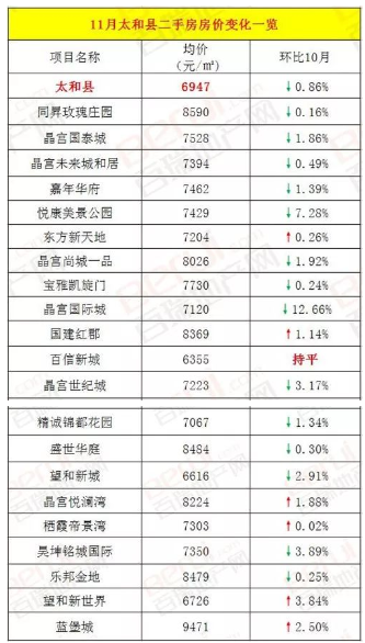 2、太和县21个小区14个下降!
