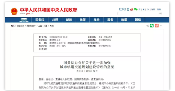 “新81号文”,即“国务院办公厅关于进一步加强城市轨道交通规划建设管理的意见 国办发[2018]52号”正式对外印发。