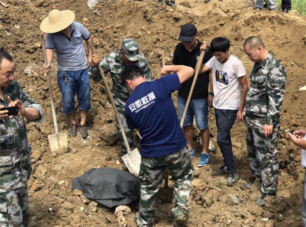 26日上午9时,阜阳蓝天救援队的阜阳民兵应急机动直属队接警方电话,三合镇有一老人在施工现场失联,疑似被掩埋,请求协助搜寻。到达现场后经过研判锁定位置在颍州区三合镇辖区的一条水沟边后进行挖掘,全力以赴搜
