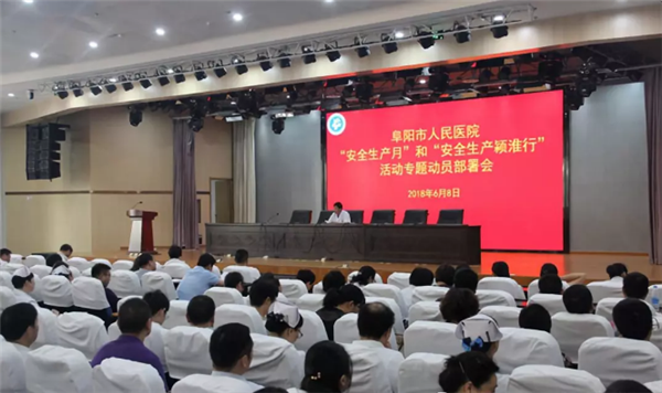 6月8日,阜阳市人民医院在南区学术报告厅召开2018年“安全生产月”和“安全生产颍淮行”专题动员部署会。会议由院党委书记、院长冉献贵主持,全体中层干部参加会议。会上,院党委书记、院长冉献贵作动员讲话。